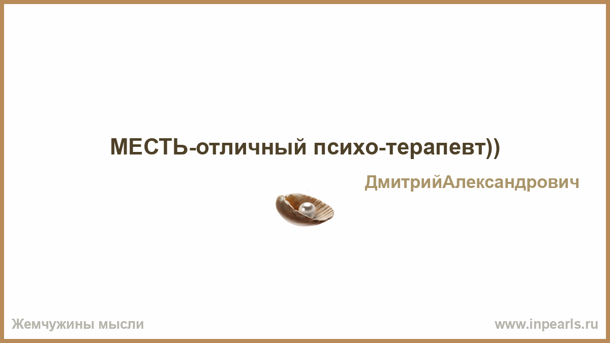 Никогда не мстите подлым людям. Ведь они себя и так съедают. Всё хорошее, им данное от Бога, подлостью своей испепеляют. Злостью наполняя свою душу, приближают час своей расплаты. Ваше счастье-поперёк им горла. Пережить его-силёнок маловато. Ведь недаром говорят в народе:"Если враг увидит твою радость, как бы ни желал словами блага, вряд ли испытать сумеет сладость" И от злости, как от боли, стонут нервы. Хорошо Вам-а ему всё это-ядом. Значит, месть сама врага находит. Мстить, поверьте, никому не надо!