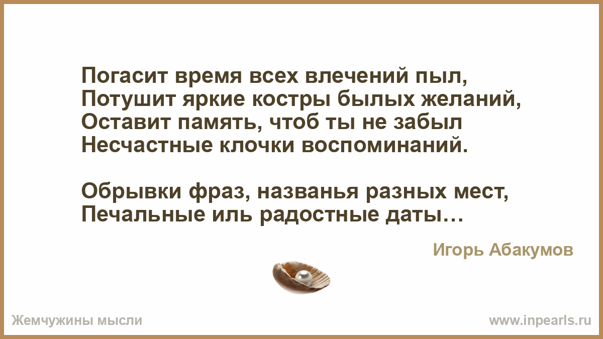 Потушит яркие костры былых желаний,