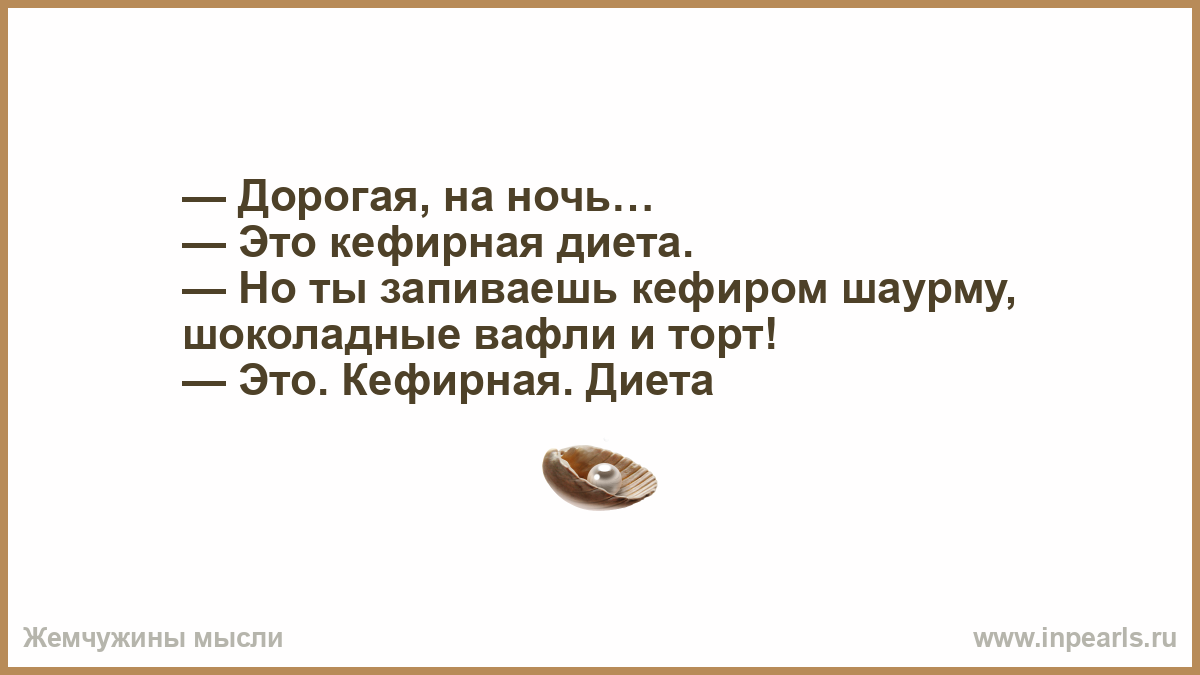 — Но ты запиваешь кефиром шаурму, шоколадные вафли и торт!