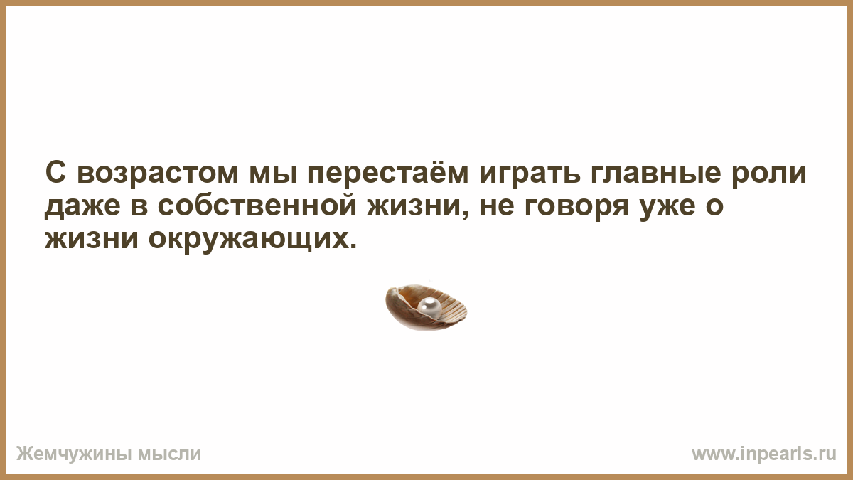 С возрастом мы перестаём играть главные роли даже в собственной жизни, не говоря уже о жизни окружающих.
