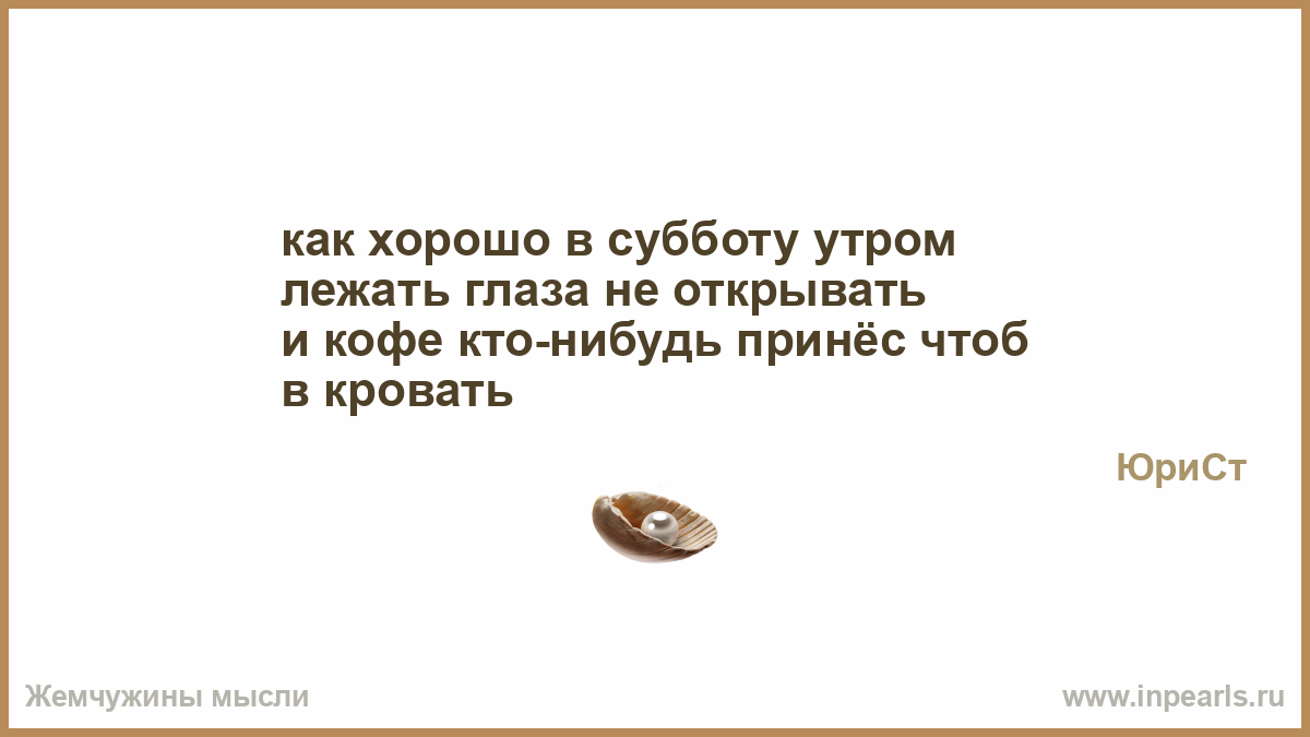 как хорошо в субботу утром лежать глаза не открывать и кофе кто-нибудь принёс чтоб в кровать