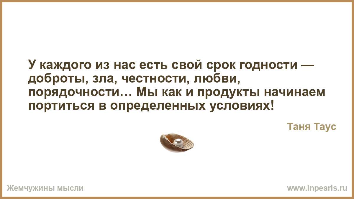 У каждого из нас есть свой срок годности — доброты, зла, честности, любви, порядочности… Мы как и продукты начинаем портиться в определенных условиях!