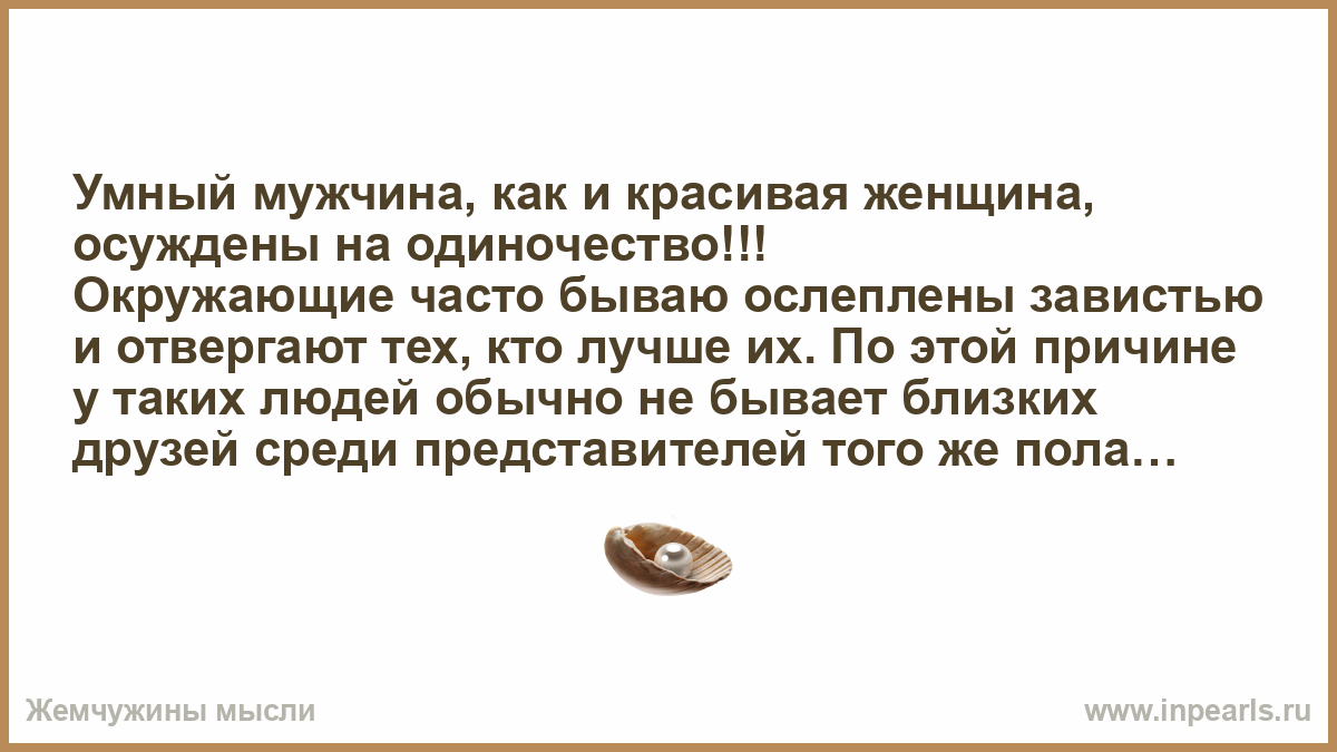 Умный мужчина, как и красивая женщина, осуждены на одиночество!!!