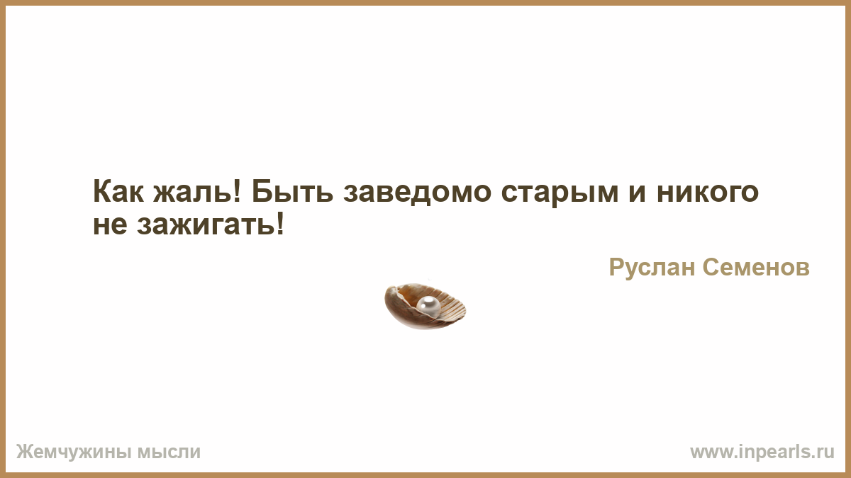Как жаль! Быть заведомо старым и никого не зажигать!