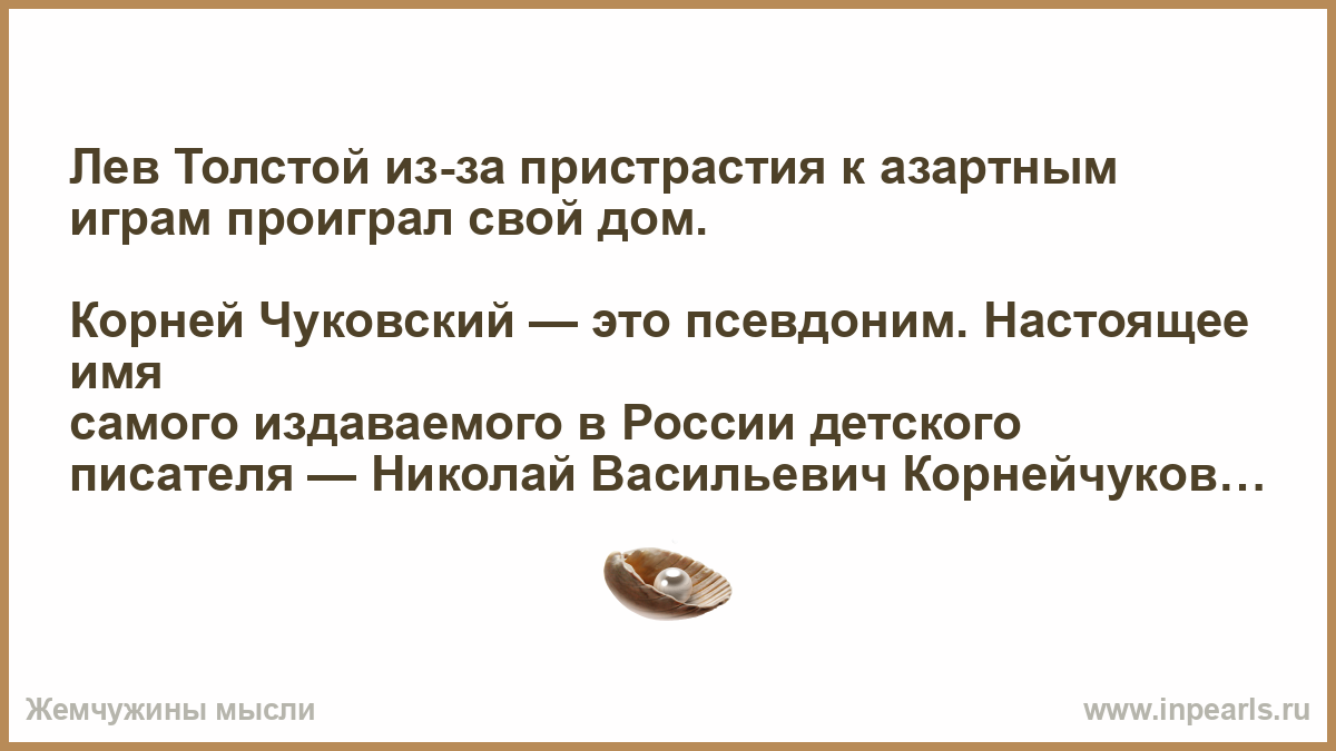 Лев Толстой из-за пристрастия к азартным играм проиграл свой дом.