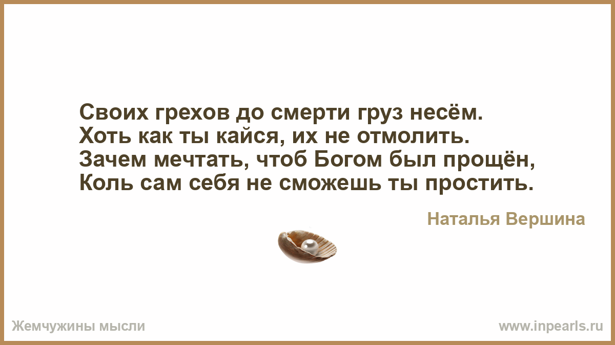 Своих грехов до смерти груз несём.