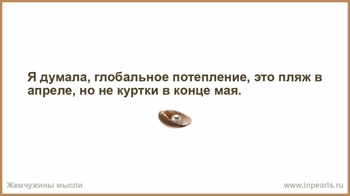 Я думала, глобальное потепление, это пляж в апреле, но не куртки в конце мая.
