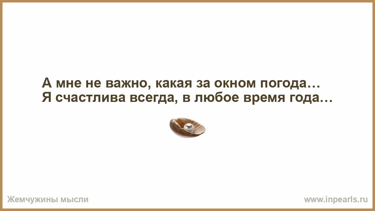 А мне не важно, какая за окном погода… Я счастлива всегда, в любое время года…
