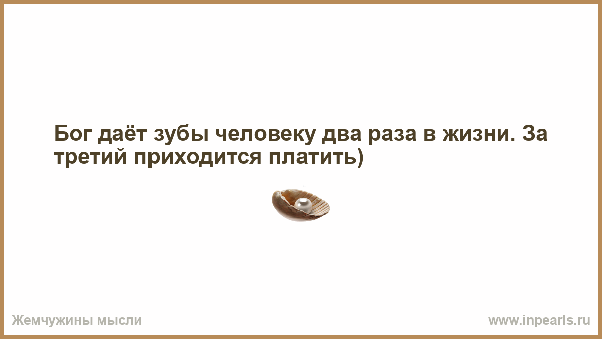 Бог даёт зубы человеку два раза в жизни. За третий приходится платить)