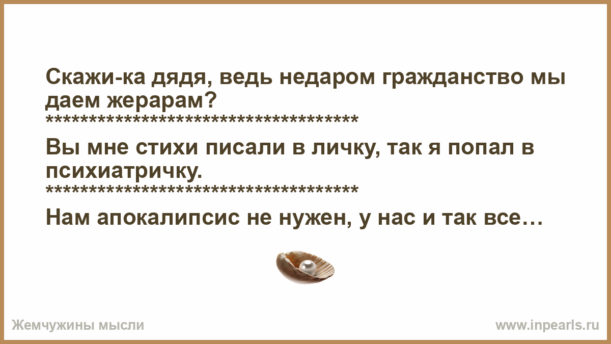 Скажи-ка дядя, ведь недаром гражданство мы даем жерарам?