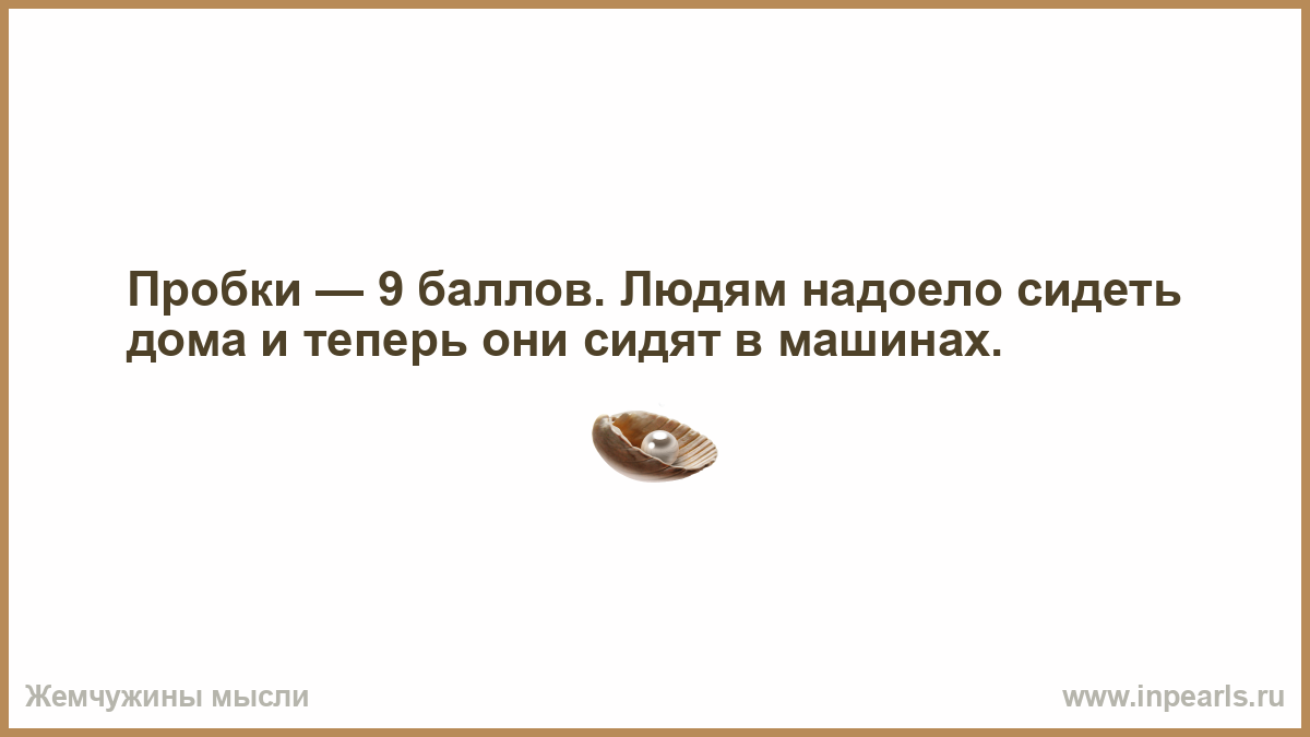 Пробки — 9 баллов. Людям надоело сидеть дома и теперь они сидят в машинах.