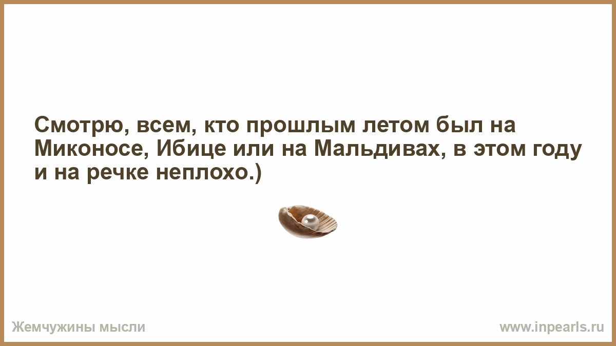 Смотрю, всем, кто прошлым летом был на Миконосе, Ибице или на Мальдивах, в этом году и на речке неплохо.)