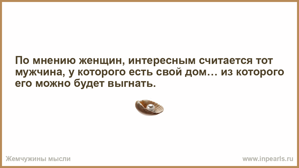 По мнению женщин, интересным считается тот мужчина, у которого есть свой дом… из которого его можно будет выгнать.