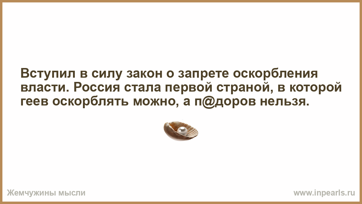 Вступил в силу закон о запрете оскорбления власти. Россия стала первой страной, в которой геев оскорблять можно, а п@доров нельзя.