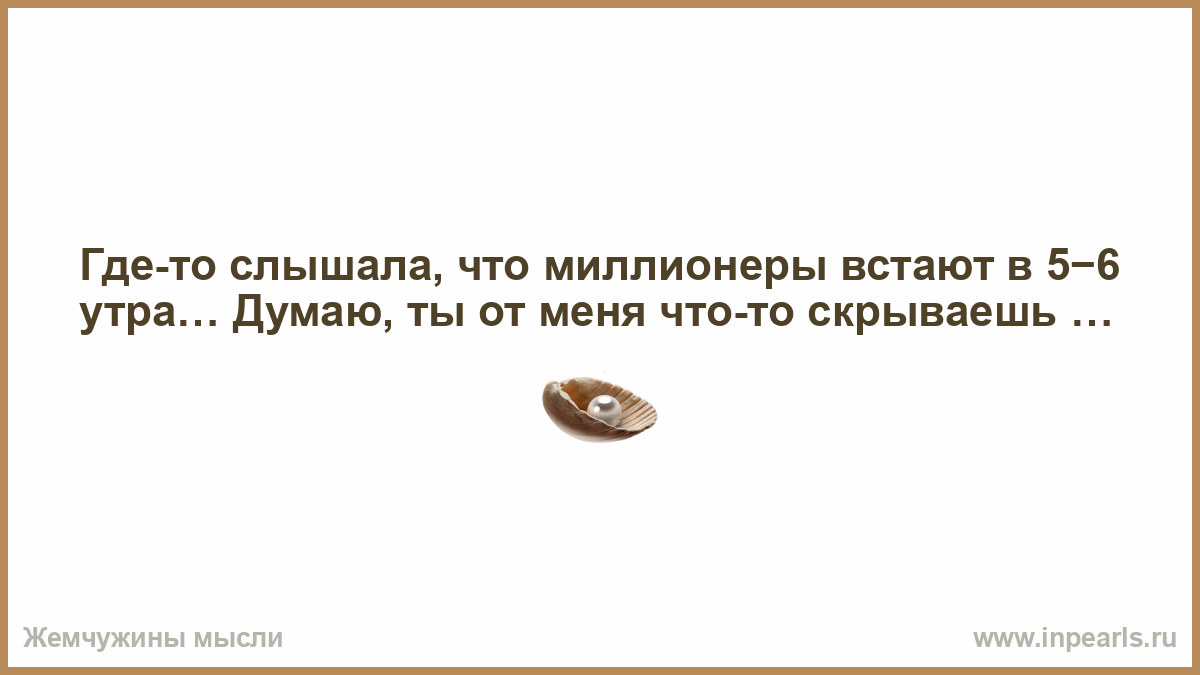 Где-то слышала, что миллионеры встают в 5−6 утра… Думаю, ты от меня что-то скрываешь …