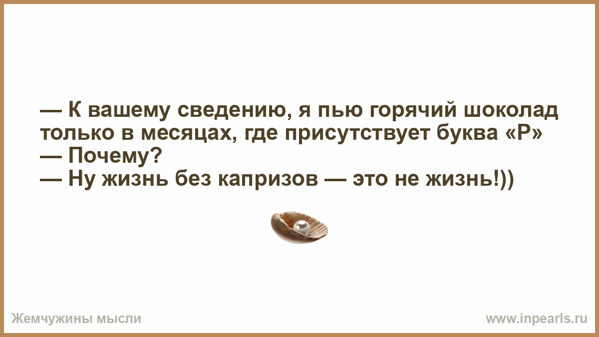 — К вашему сведению, я пью горячий шоколад только в месяцах, где присутствует буква «Р»
