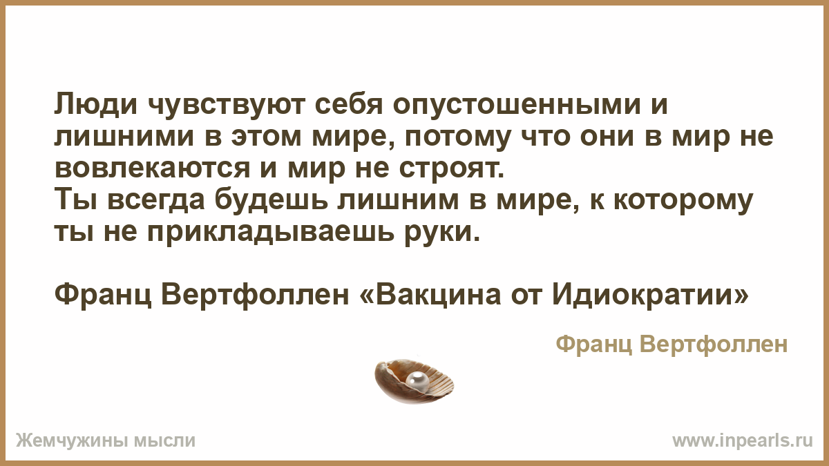 Люди чувствуют себя опустошенными и лишними в этом мире, потому что они в мир не вовлекаются и мир не строят.