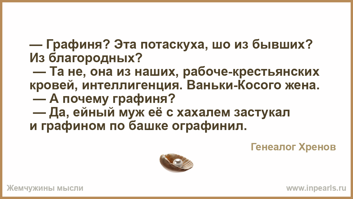 — Графиня? Эта потаскуха, шо из бывших? Из благородных?
