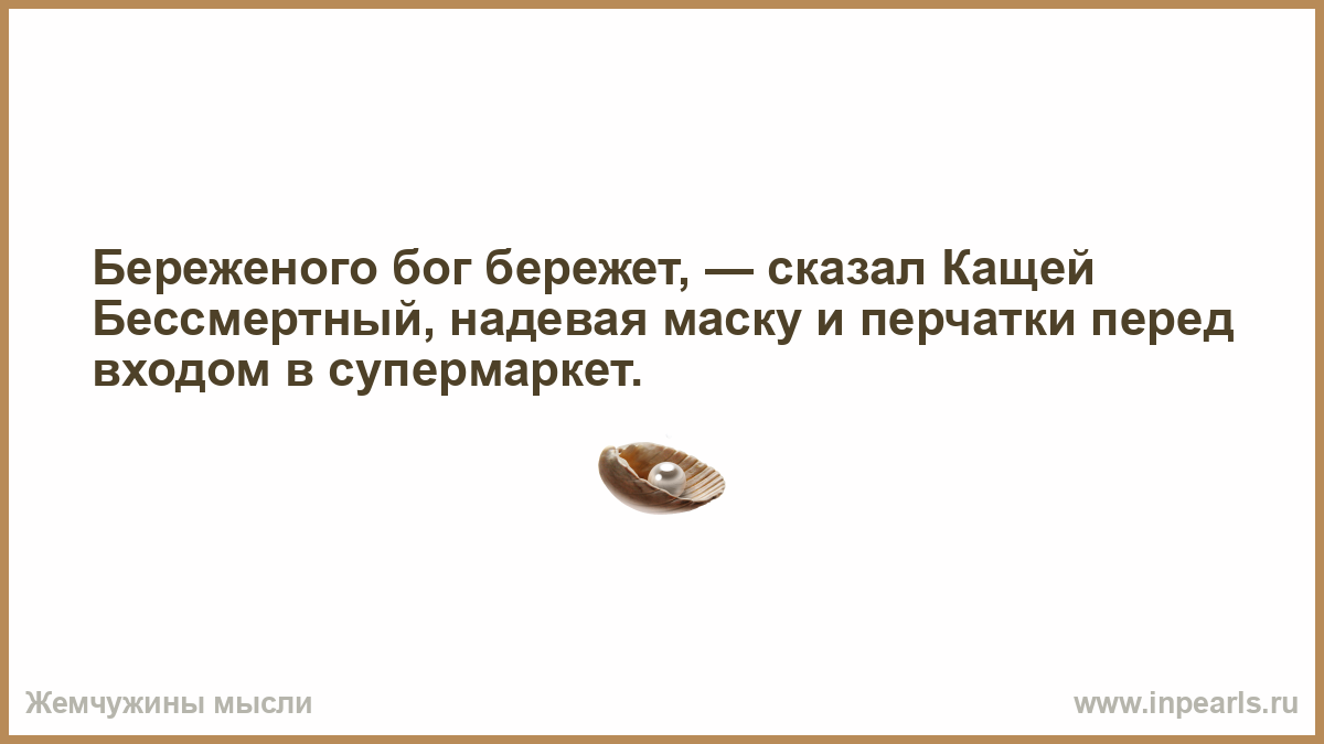 Береженого бог бережет, — сказал Кащей Бессмертный, надевая маску и перчатки перед входом в супермаркет.