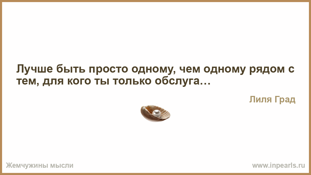 Лучше быть просто одному, чем одному рядом с тем, для кого ты только обслуга…