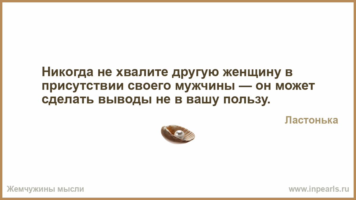 Никогда не хвалите другую женщину в присутствии своего мужчины — он может сделать выводы не в вашу пользу.
