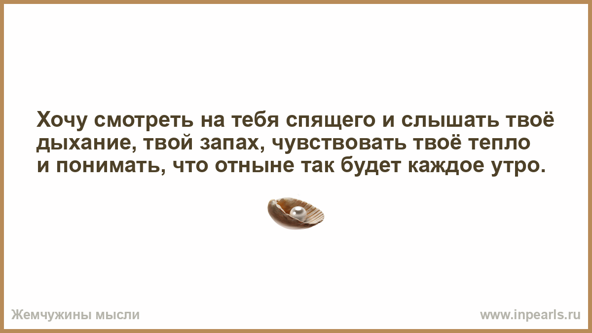 Хочу смотреть на тебя спящего и слышать твоё дыхание, твой запах, чувствовать твоё тепло и понимать, что отныне так будет каждое утро.