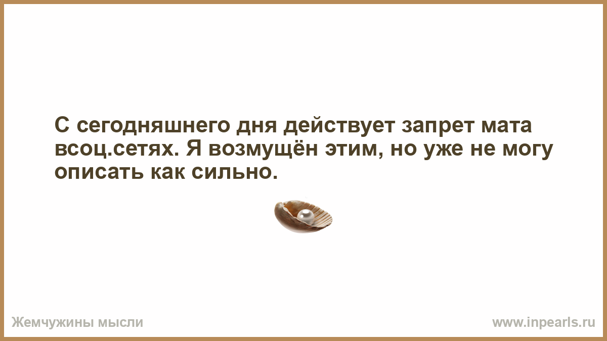 С сегодняшнего дня действует запрет мата всоц.сетях. Я возмущён этим, но уже не могу описать как сильно.