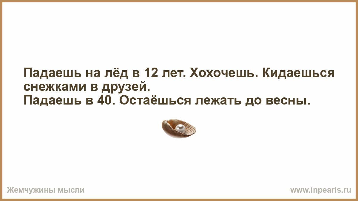Падаешь на лёд в 12 лет. Хохочешь. Кидаешься снежками в друзей.