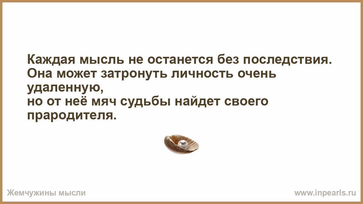 Каждая мысль не останется без последствия. Она может затронуть личность очень удаленную, но от неё мяч судьбы найдет своего прародителя.