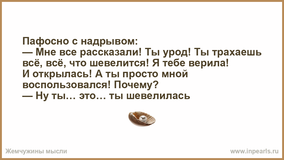 — Мне все рассказали! Ты урод! Ты трахаешь всё, всё, что шевелится! Я тебе верила! И открылась! А ты просто мной воспользовался! Почему?