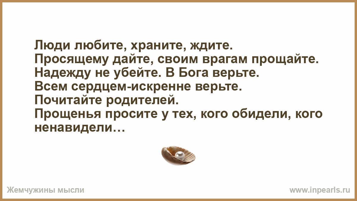 Любить. Хранить. Ждать. Прощать. Отдавать. Ценить. Почитать. Верить истинно,