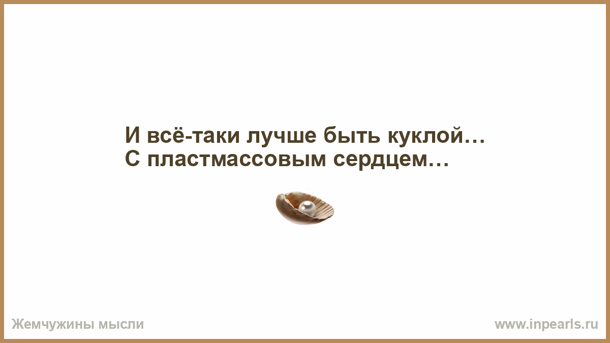 И всё-таки лучше быть куклой… С пластмассовым сердцем…