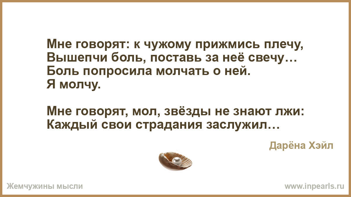 Мне говорят: к чужому прижмись плечу,