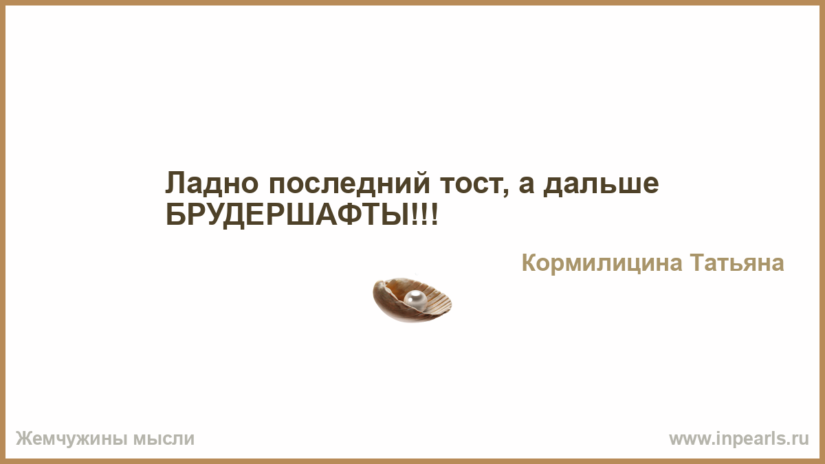 Ладно последний тост, а дальше БРУДЕРШАФТЫ!!!