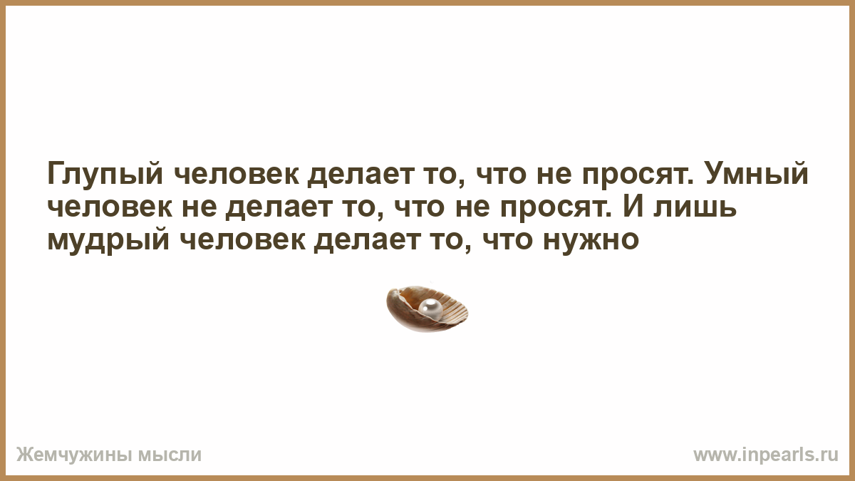 Глупый человек делает то, что не просят. Умный человек не делает то, что не просят. И лишь мудрый человек делает то, что нужно