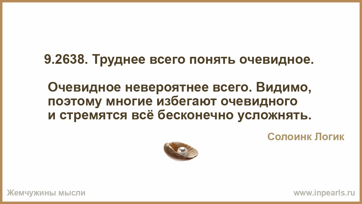 Очевидное невероятнее всего. Видимо, поэтому многие избегают очевидного и стремятся всё бесконечно усложнять.