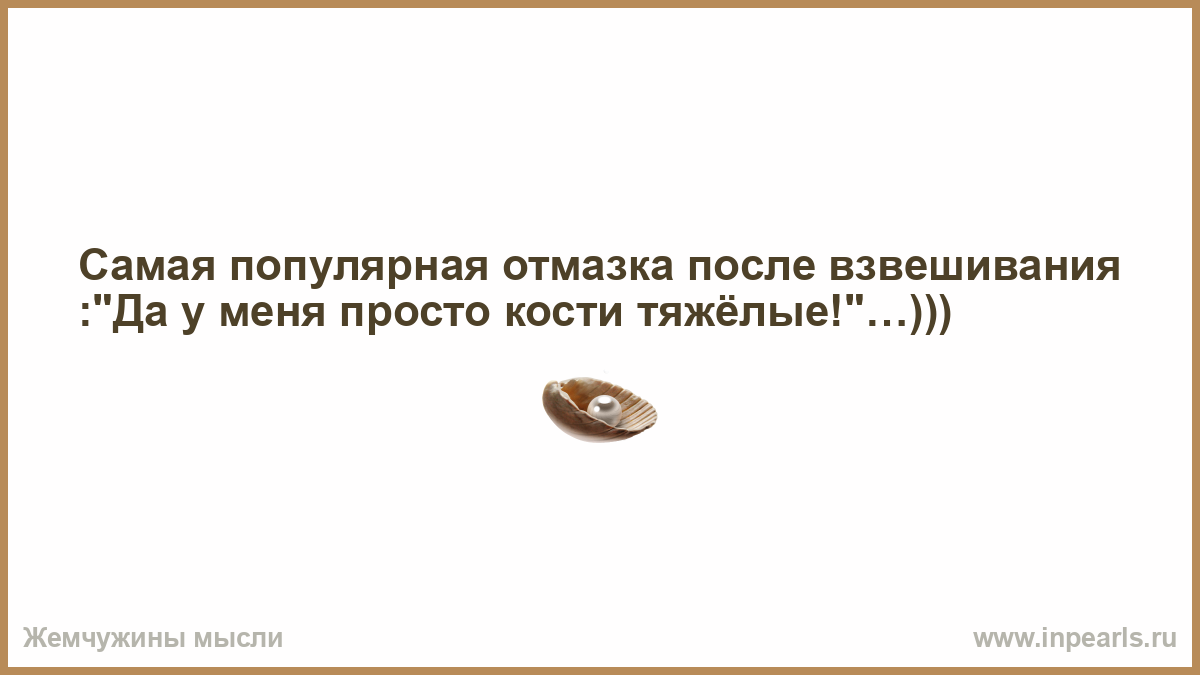 Самая популярная отмазка после взвешивания :"Да у меня просто кости тяжёлые!"…)))