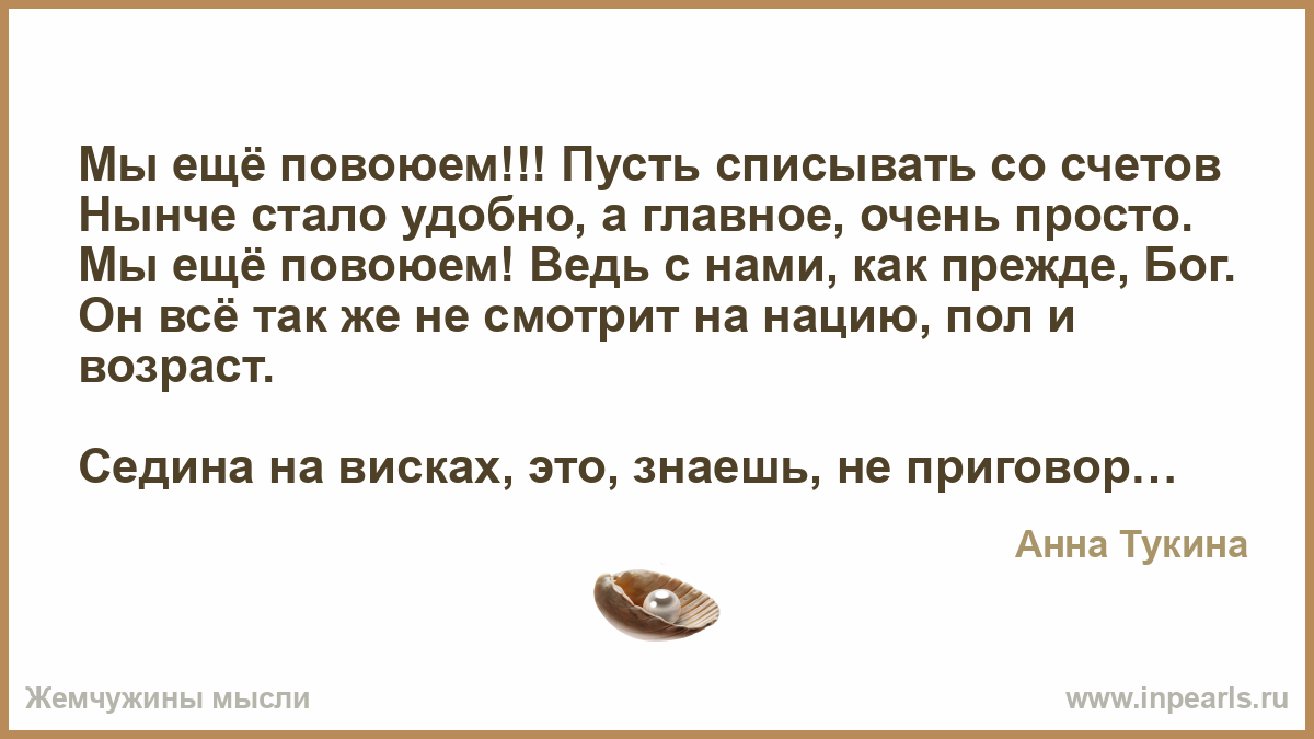 Мы ещё повоюем!!! Пусть списывать со счетов
