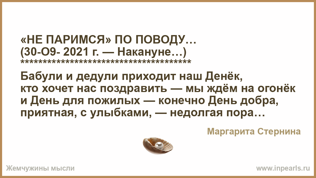 Бабули и дедули приходит наш Денёк,