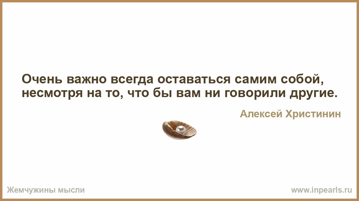 Очень важно всегда оставаться самим собой, несмотря на то, что бы вам ни говорили другие.