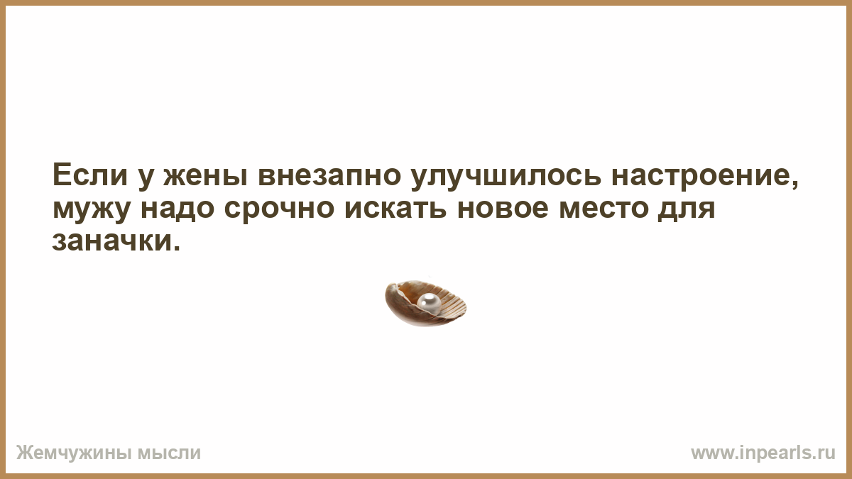 Если у жены внезапно улучшилось настроение, мужу надо срочно искать новое место для заначки.