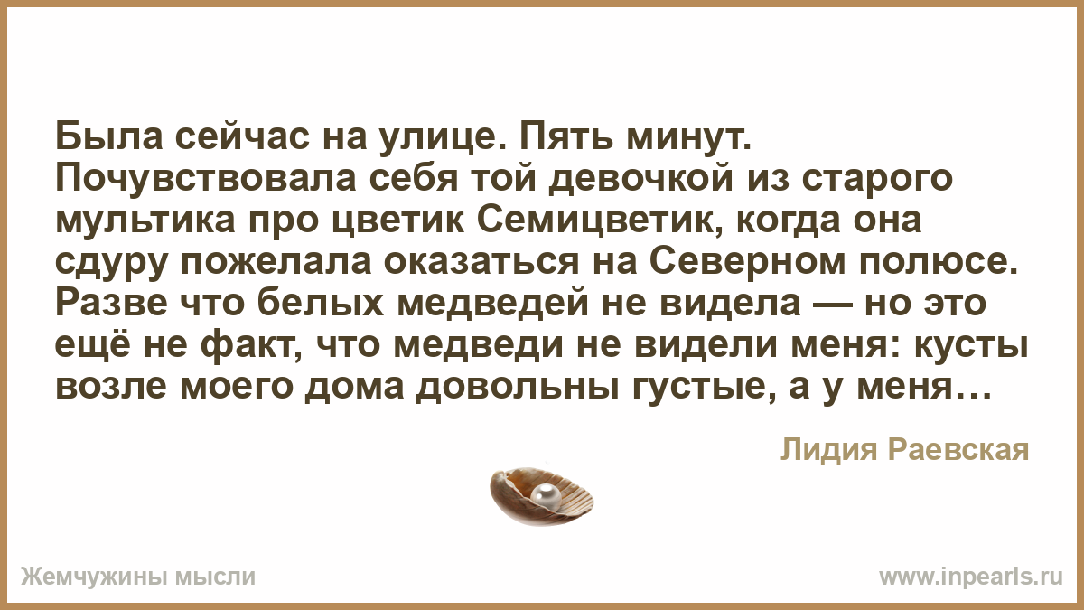 Почувствовала себя той девочкой из старого мультика про цветик Семицветик, когда она сдуру пожелала оказаться на Северном полюсе. Разве что белых медведей не видела — но это ещё не факт, что медведи не видели меня: кусты возле моего дома довольны густые, а у меня глазные яблоки были покрыты гололедицей.