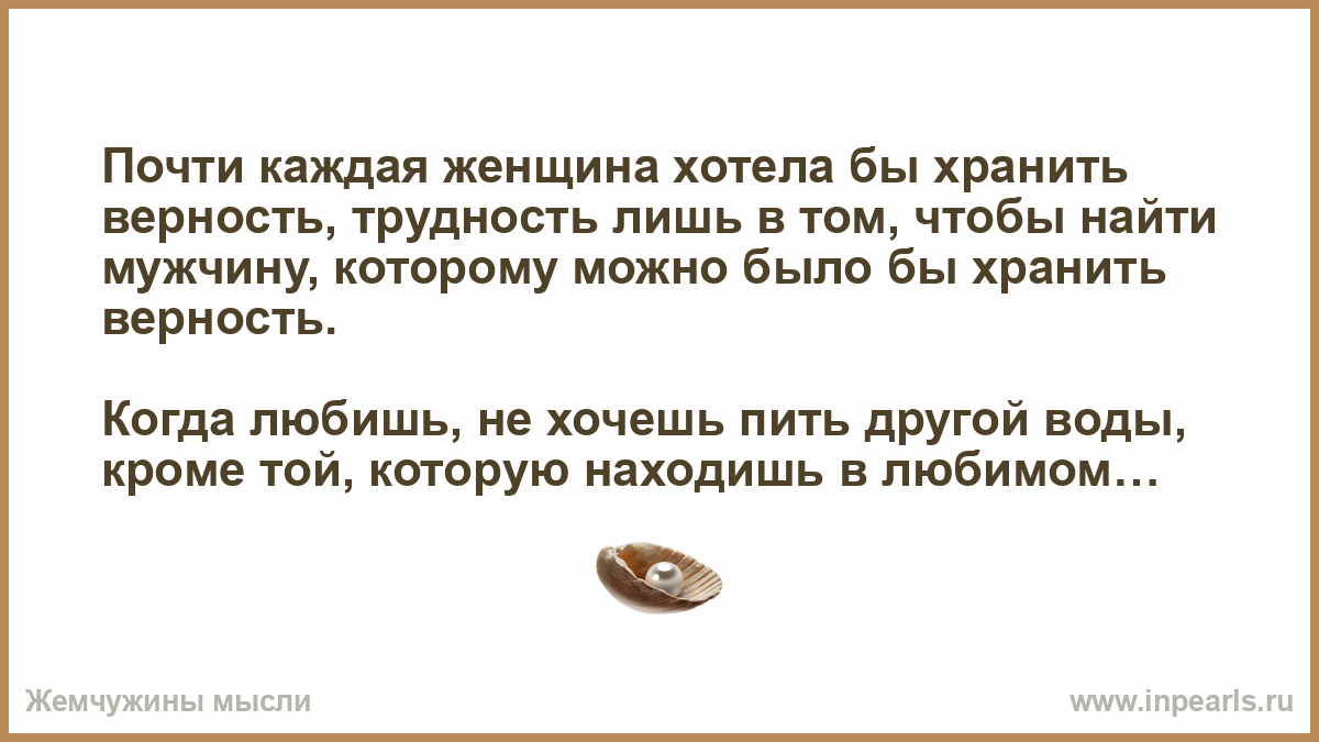 Почти каждая женщина хотела бы хранить верность, трудность лишь в том, чтобы найти мужчину, которому можно было бы хранить верность.