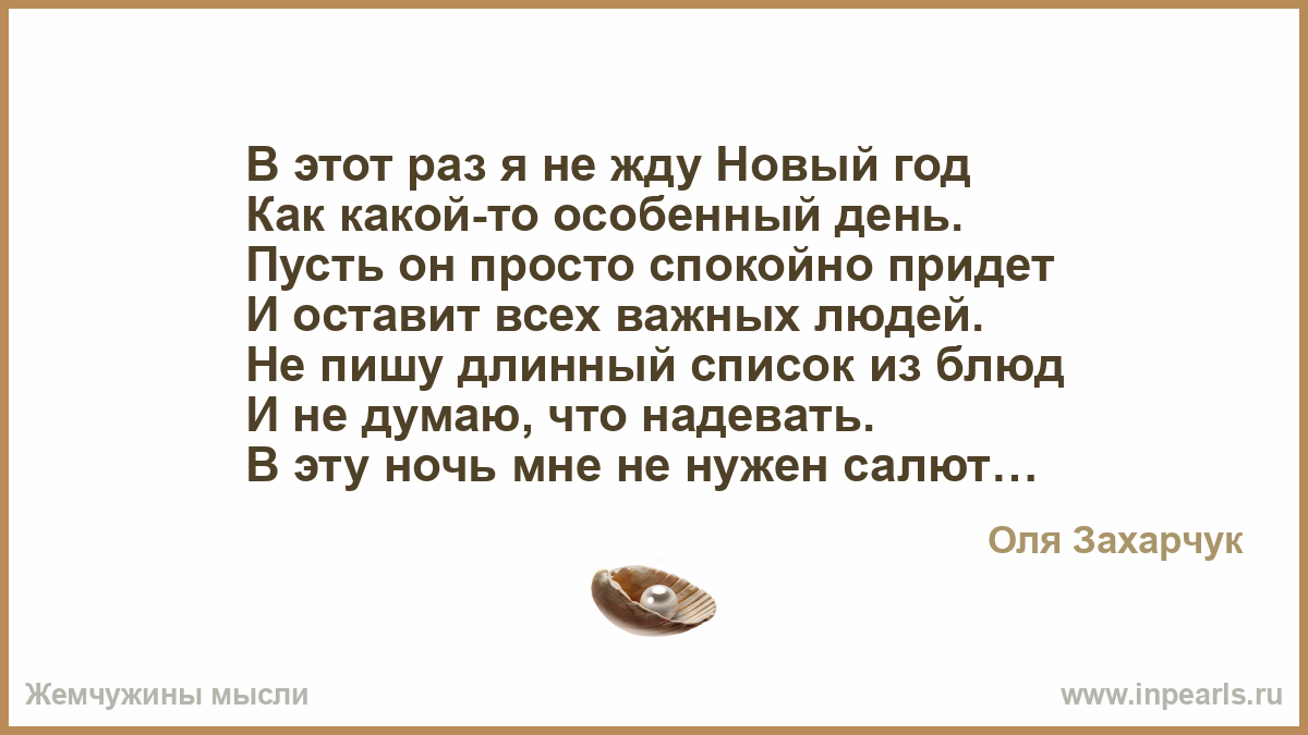 Не спешить туда, где не ждут, даже если там — целый мир, не выдумывать ложный уют, где его никто не просил. Опускаться уметь с небес, ощущать под ногами твердь, научиться жить как-то «без», если заперли плотно дверь. Быть честнее с самим собой, понимать каждый новый шаг, если надо — пускаться в бой, побеждая нелепый страх. Попытаться по-новой жить, не теряя бесценных дней, не цепляясь за миражи, стать разумнее и мудрей. Отпускать, где хотят уйти, различать, когда тебе врут, все обиды сумев простить, НЕ СПЕШИТЬ ТУДА, ГДЕ НЕ ЖДУТ…