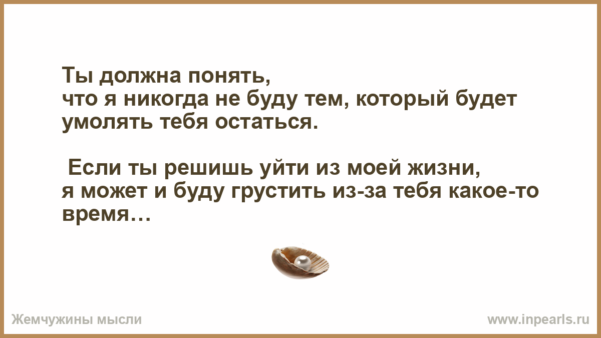 Ты должна понять, что я никогда не буду тем, который будет умолять тебя остаться.