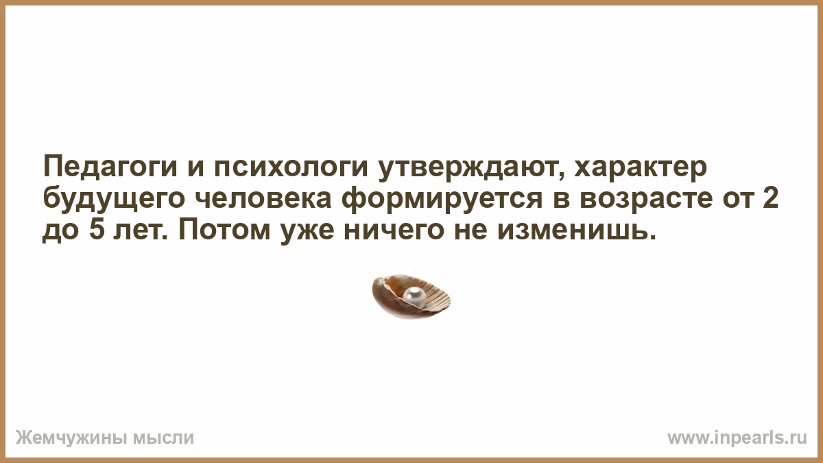 Педагоги и психологи утверждают, характер будущего человека формируется в возрасте от 2 до 5 лет. Потом уже ничего не изменишь.