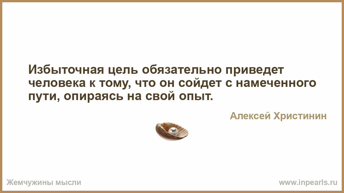 Избыточная цель обязательно приведет человека к тому, что он сойдет с намеченного пути, опираясь на свой опыт.