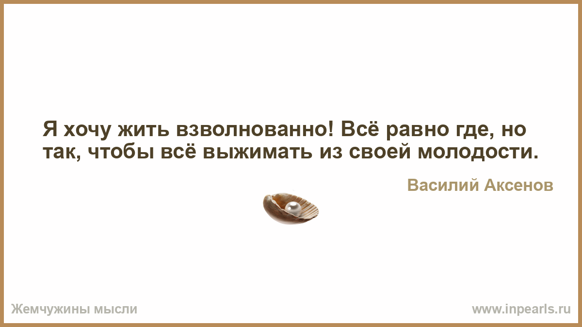 Я хочу жить взволнованно! Всё равно где, но так, чтобы всё выжимать из своей молодости.