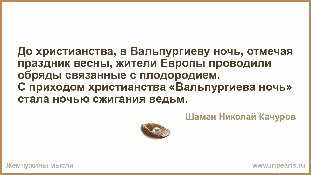 До христианства, в Вальпургиеву ночь, отмечая праздник весны, жители Европы проводили обряды связанные с плодородием.