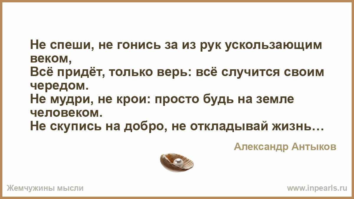 Не жалей ни о чём, не стремись к похвале и наградам: